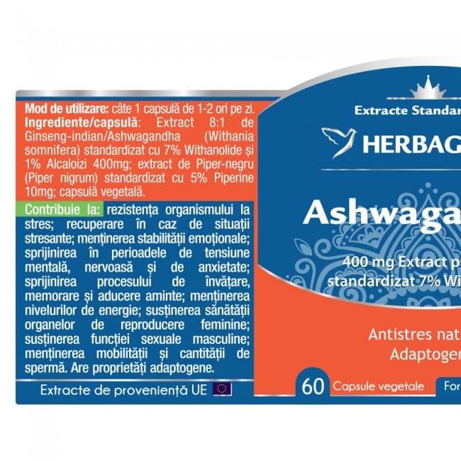 - Dublă standardizare (Extract Ashwagandha garantat cu 7% – withanolide, 1% -alcaloizi)