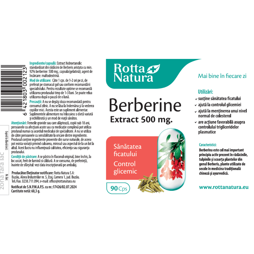 Berberine Extract 500 mg – 90 comprimate – Rotta Natura