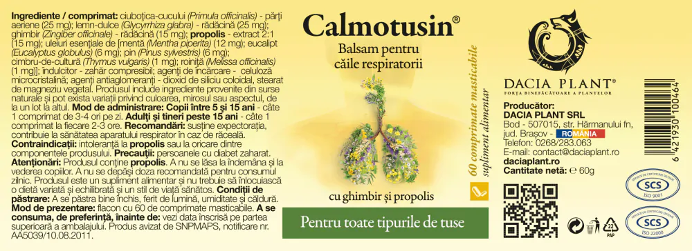 Calmotusin – 60 comprimate masticabile – Dacia Plant