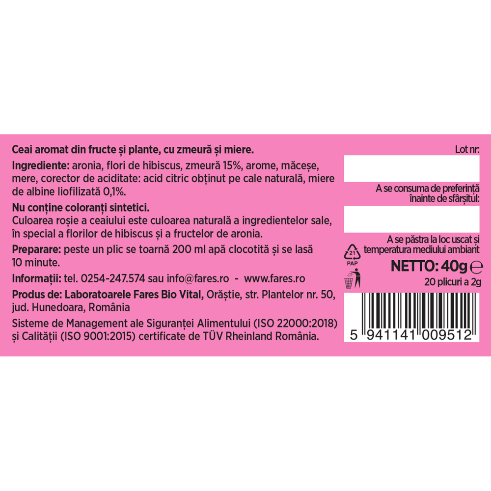 Ceai cu zmeură și miere, ceai la plic – Fares