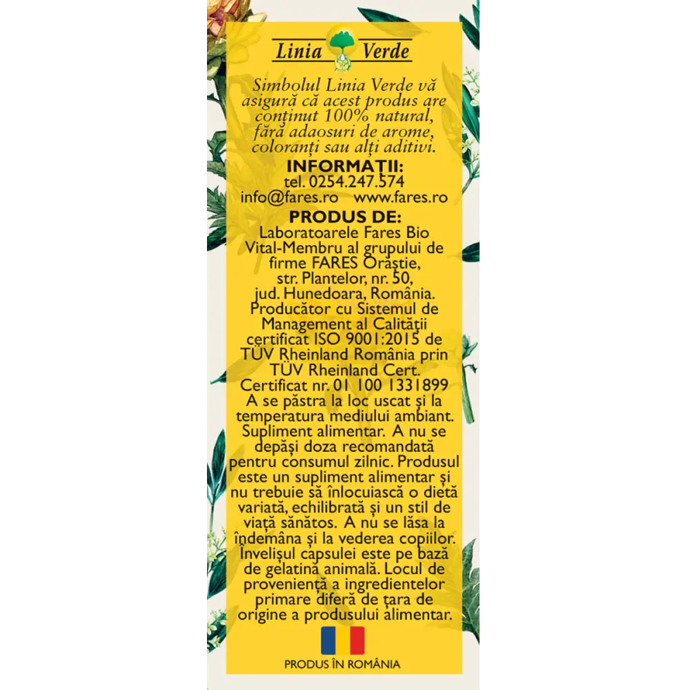 – Extract uscat de rădăcină de păpădie (Taraxaci radix) standardizat în min. 5% polifenoli 44 mg