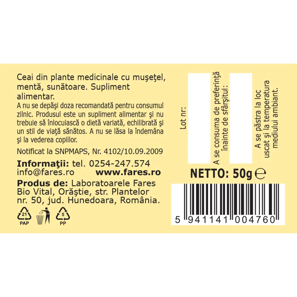 Colon sănătos, ceai la pungă – Fares