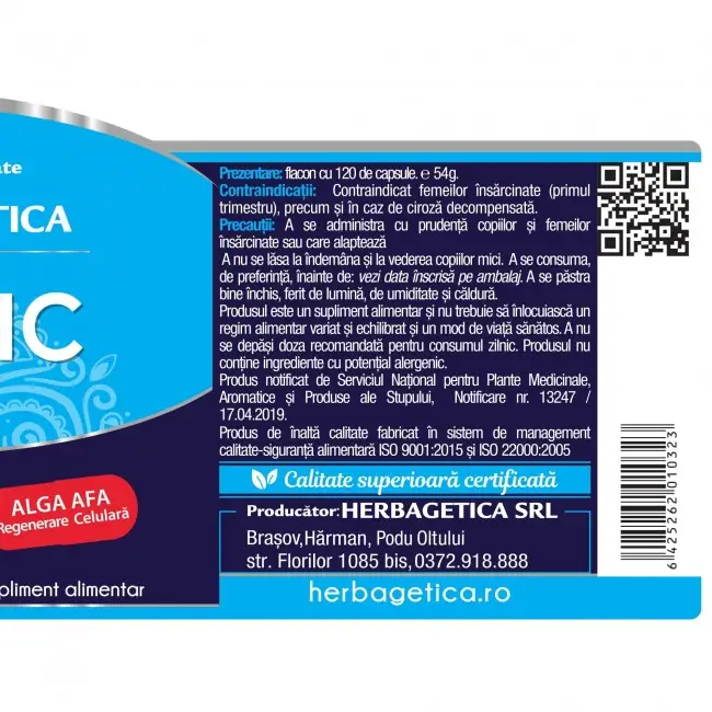 Alga AFA, este o algă verde-albastră, recunoscută pentru efectele benefice unice comparativ pe care le are asupra procesului de regenerare a organismului. Alga AFA este o algă remarcabilă datorită capacității sale de a stimula producția de Celule STEM, celule noi produse de organism care se livrează la organele bolnave pentru a le regenera. Acțiunea sa de regenerare se aplică și asupra celulelor ficatului, promovând detoxifierea și producția de celule hepatice noi. În plus, Alga AFA contribuie și la producția de enzime digestive, susținând astfel și funcțiile stomacului și ale pancreasului.