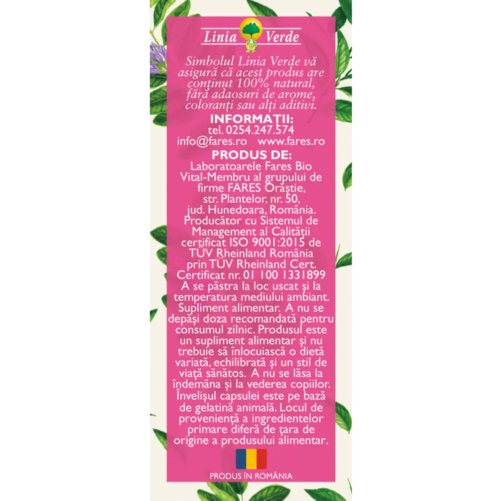-extract uscat de ceai verde (Theae folium) standardizat în min. 90% polifenoli 44 mg