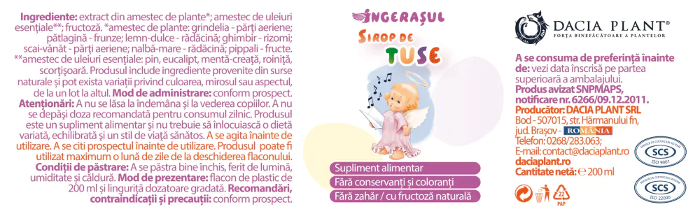 Îngerașul Sirop Tuse – 200 ml – Dacia Plant