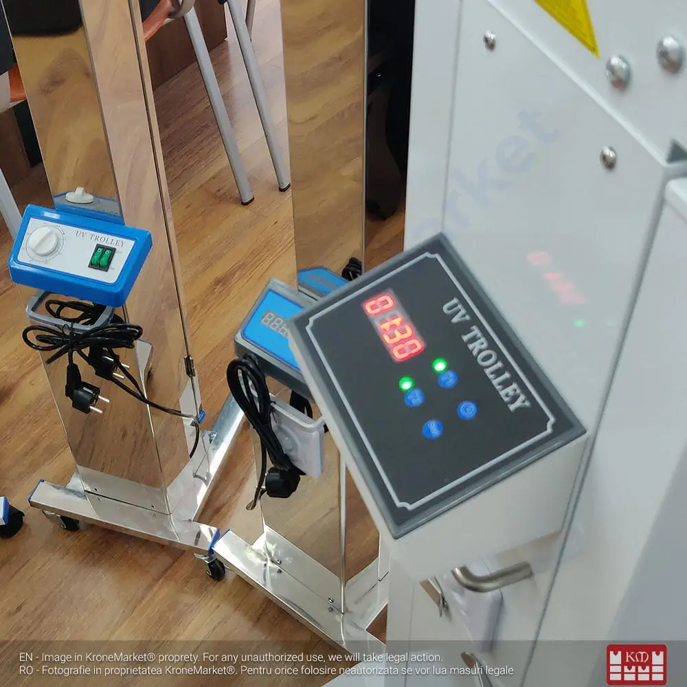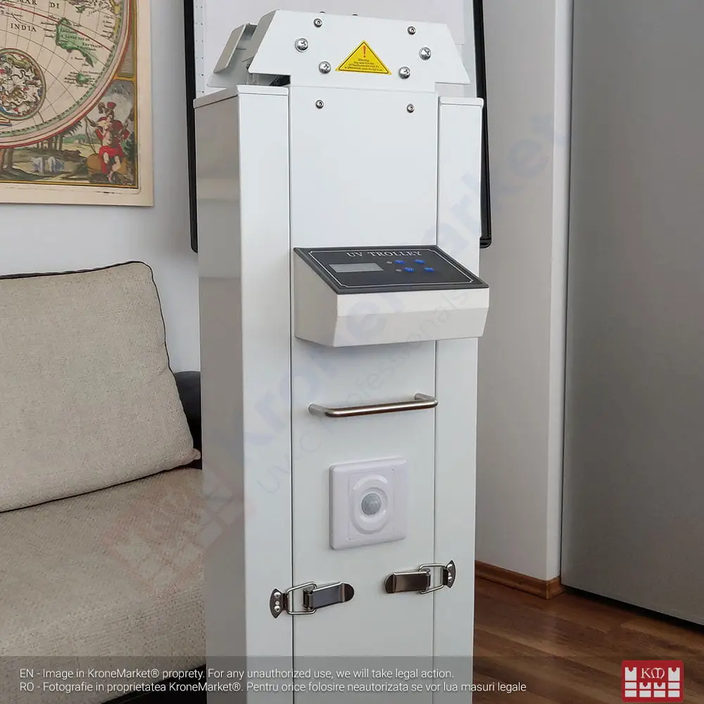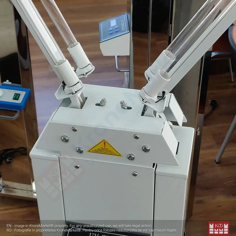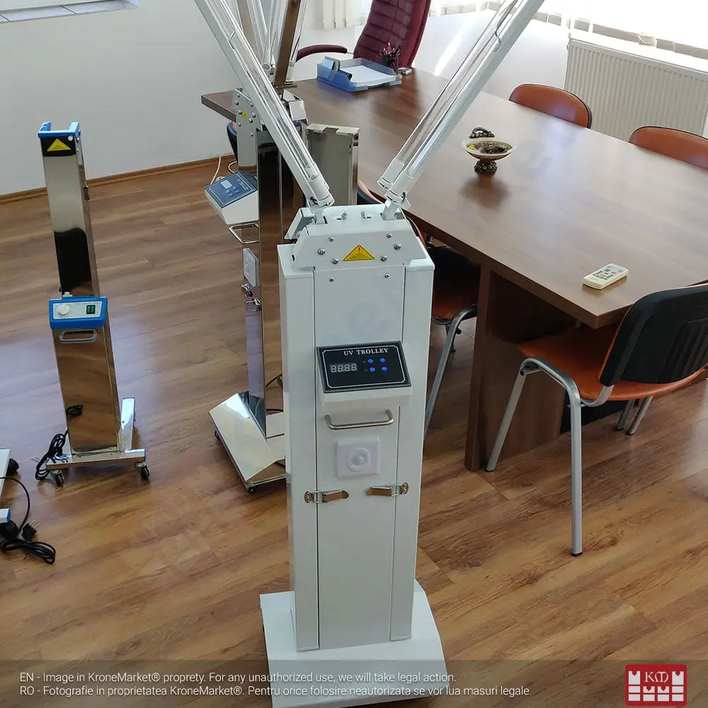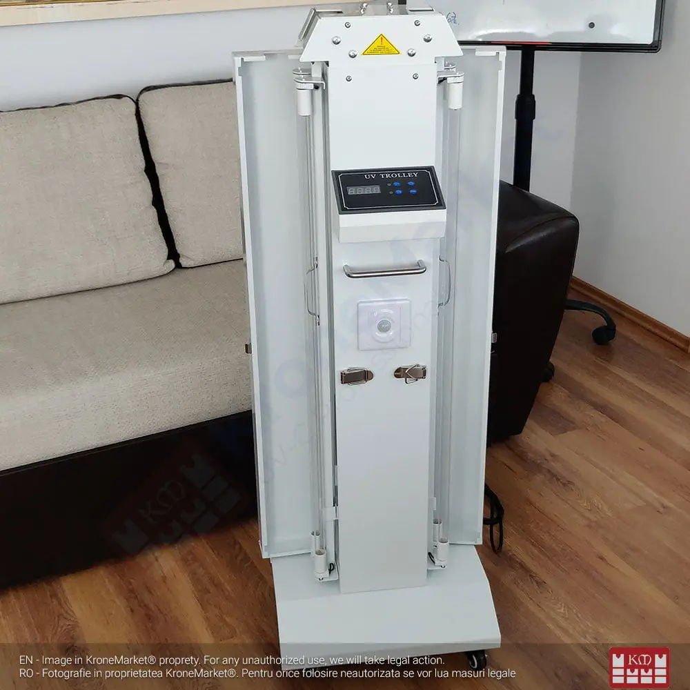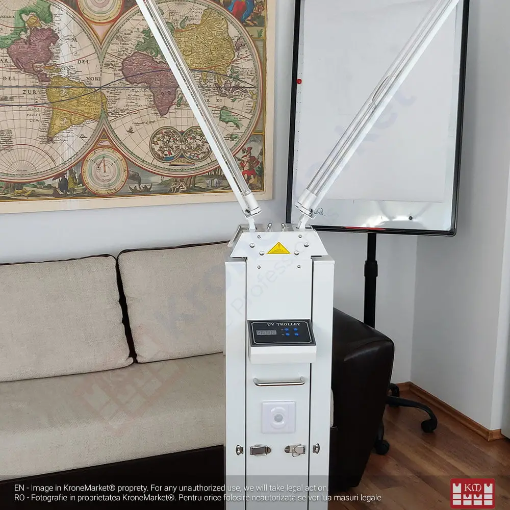 Sterilizator UV-C cu 4 tuburi de 30W pentru camere de hotel, locații publice, săli de așteptare.