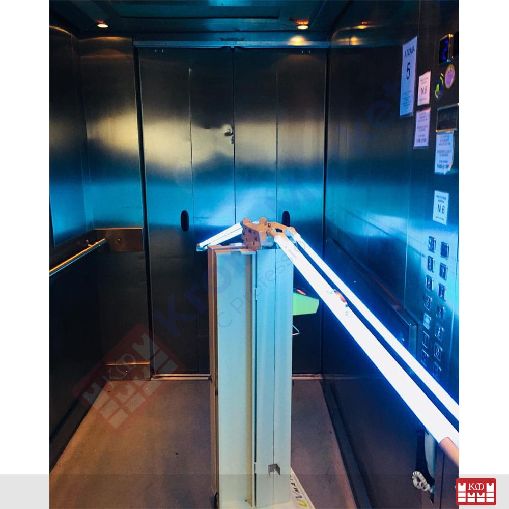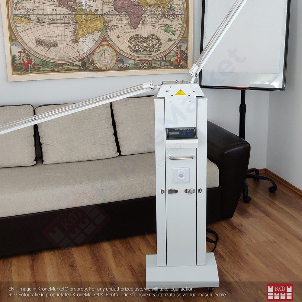 Sterilizator UV-C cu 4 tuburi de 30W pentru camere de hotel, locații publice, săli de așteptare.