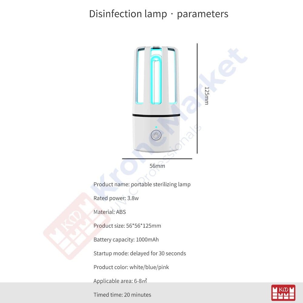 Lampă UVC germicidă portabilă KMK-A-4. Lampă UV-C germicidă portabilă cu Ozon KMK-A4, se poate folosi pentru habitaclul sterilizarea autoturismelor și autoutilitarelor de marfă și persoane (microbuze) dar se pot utiliza și in alte aplicatii pentru suprafețe si volum mai mic.