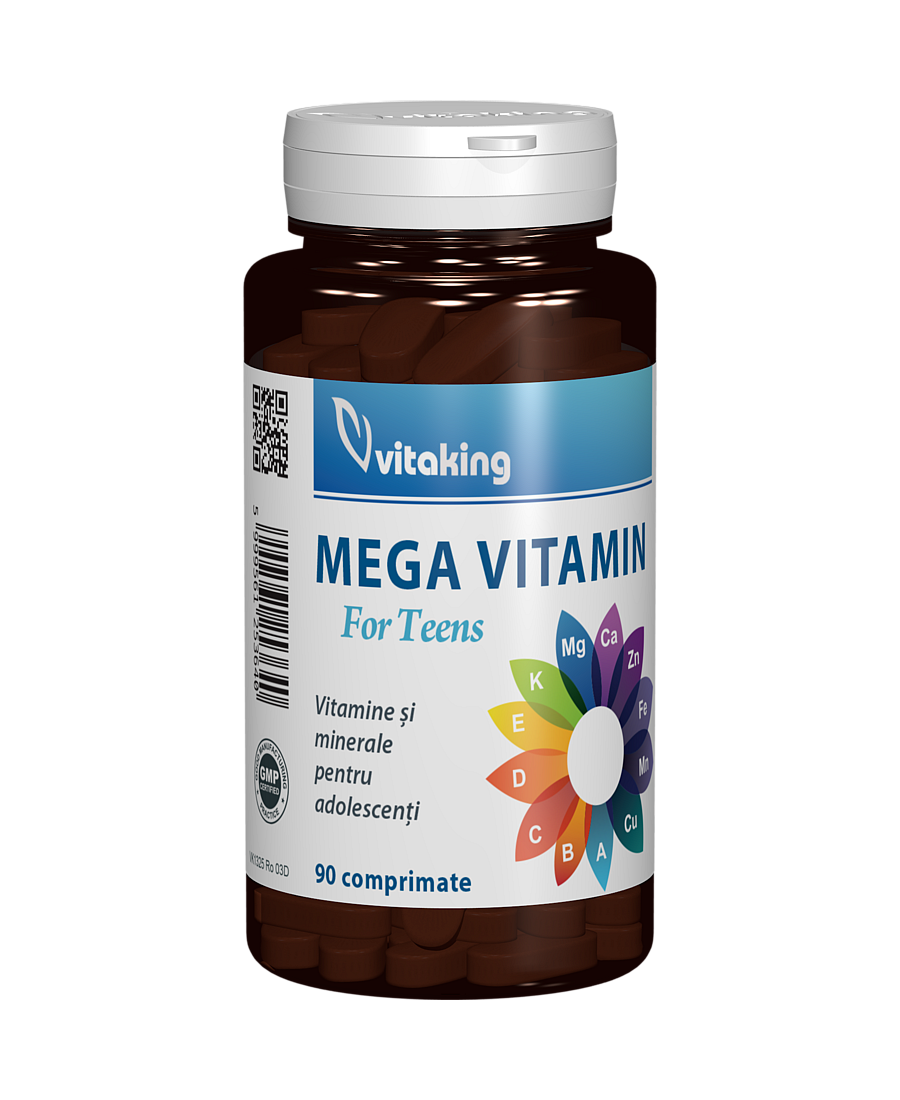 Multivitamine pentru adolescenți este un supliment alimentar complex, creat special pentru a susține dezvoltarea fizică și mentală a tinerilor în perioada de creștere. Formula conține 26 de vitamine și minerale esențiale, precum vitamina A, complexul de B-uri, vitamina C (în doză mare de 350 mg), D3, E și K1, dar și minerale precum calciu, magneziu, zinc, fier și iod. Contribuie la întărirea sistemului imunitar, susținerea funcțiilor cognitive și menținerea sănătății pielii, părului și vederii.
