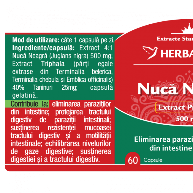 Extractul de Nuca Neagră este eficient și sigur pentru eliminarea paraziților și viermilor intestinali. Are și efect antibacterian și antifungic și s-a folosit de către nativii indieni și pentru probleme digestive precum diaree, constipație sau ulcer.