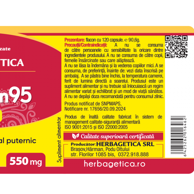 – Garantat 95% Curcuminoide – cea mai mare concentrație, extract cu eficiență ridicată