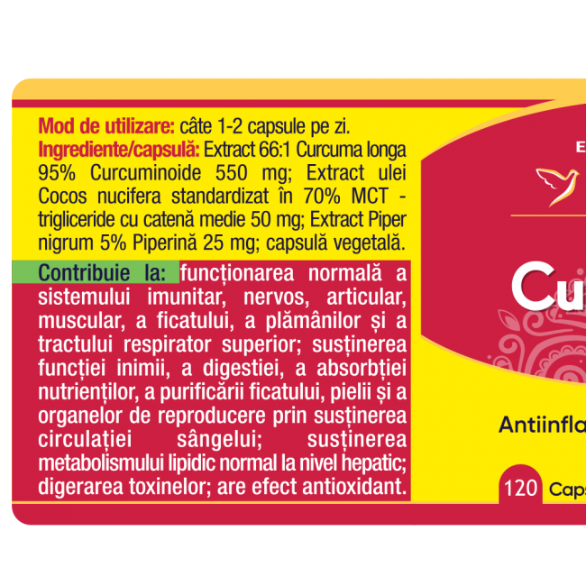 – C3 complex – conține cele trei feluri de curcuminoide în aceleași proporții în care se regăsesc natural în rizomul de Curcuma longa asigurând o acțiune sinergică ridicată