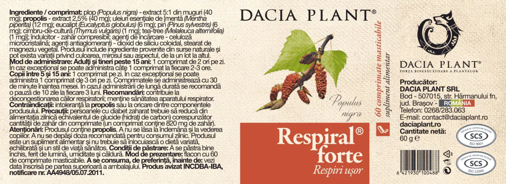 Respiral Forte – 60 comprimate masticabile – Dacia Plant