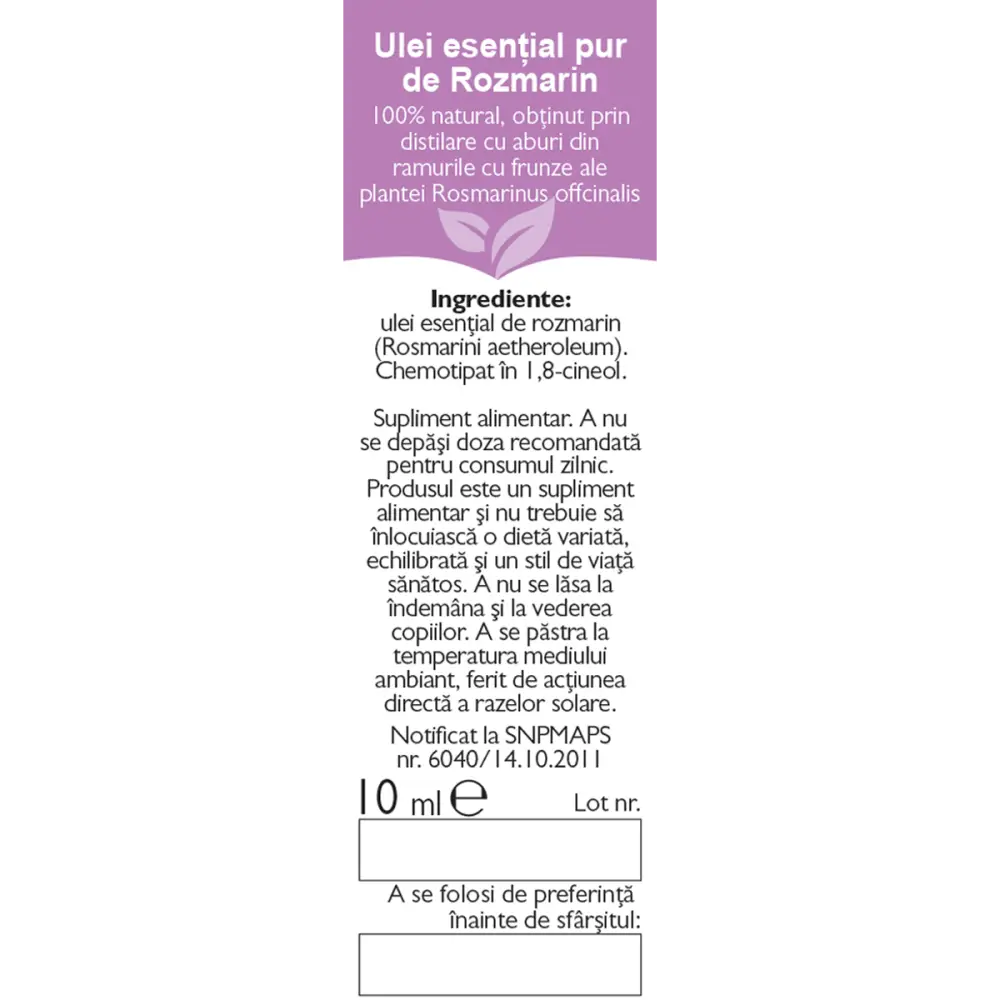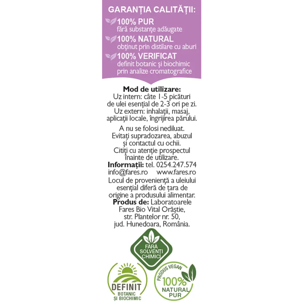 Rozmarin, ulei esențial 100% pur, definit botanic și biochimic – Fares