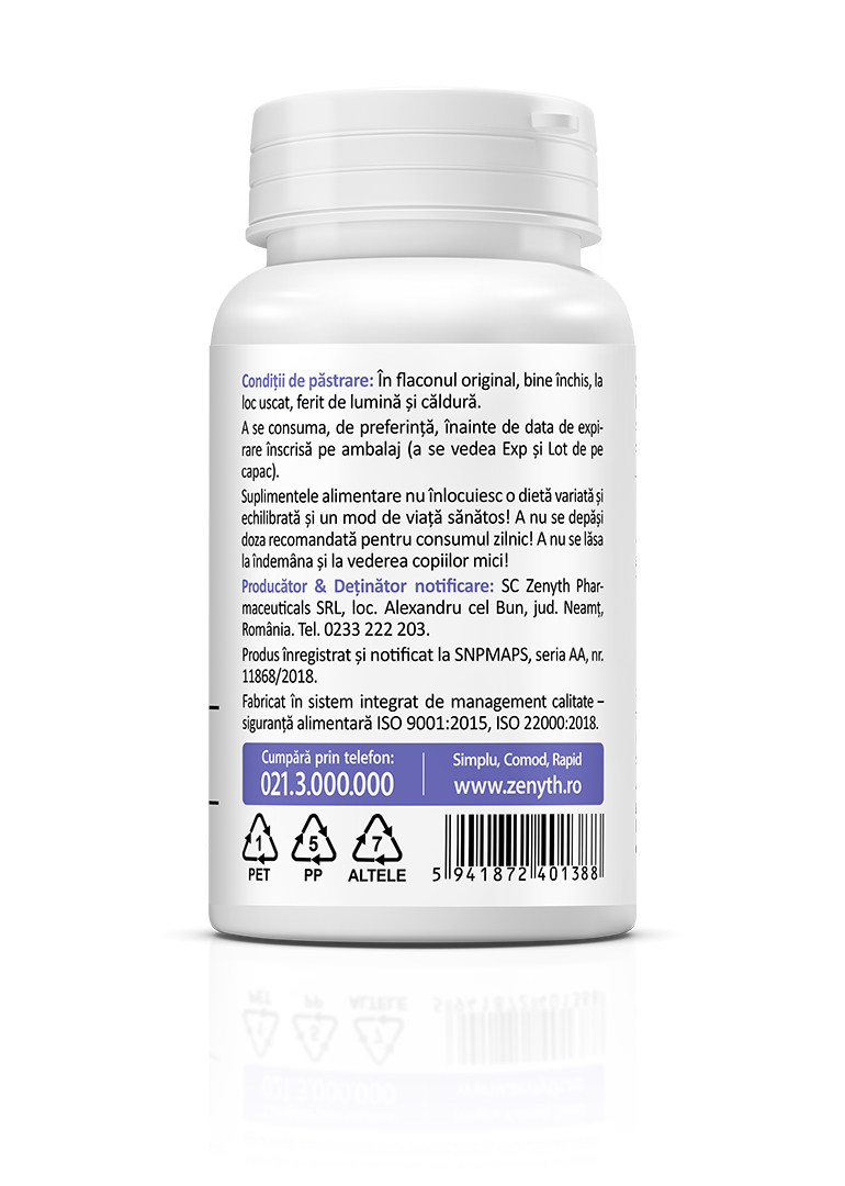 1 capsulă = 200 mcg* seleniu. (*364% VNR (cf. Reg. UE 1169/2011).