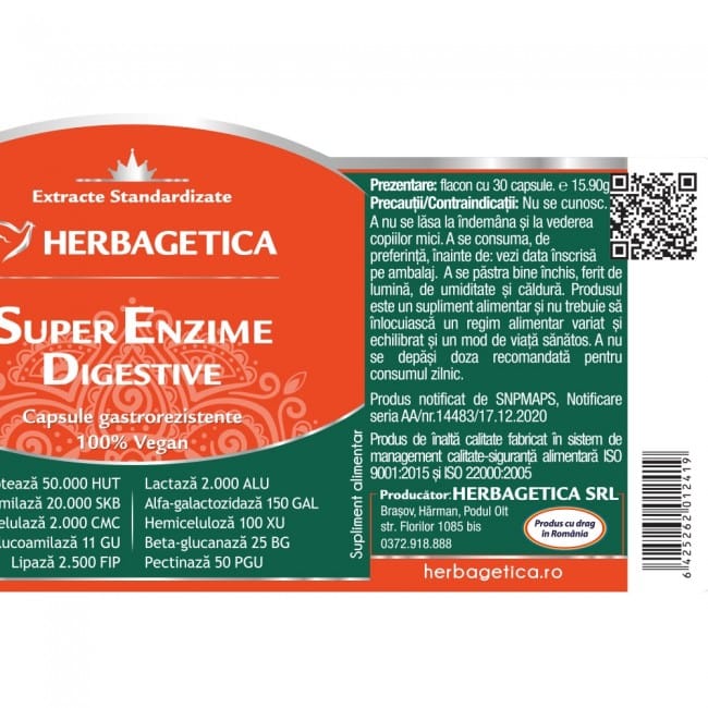 Super Enzime Digestive – 30 capsule – Herbagetica
